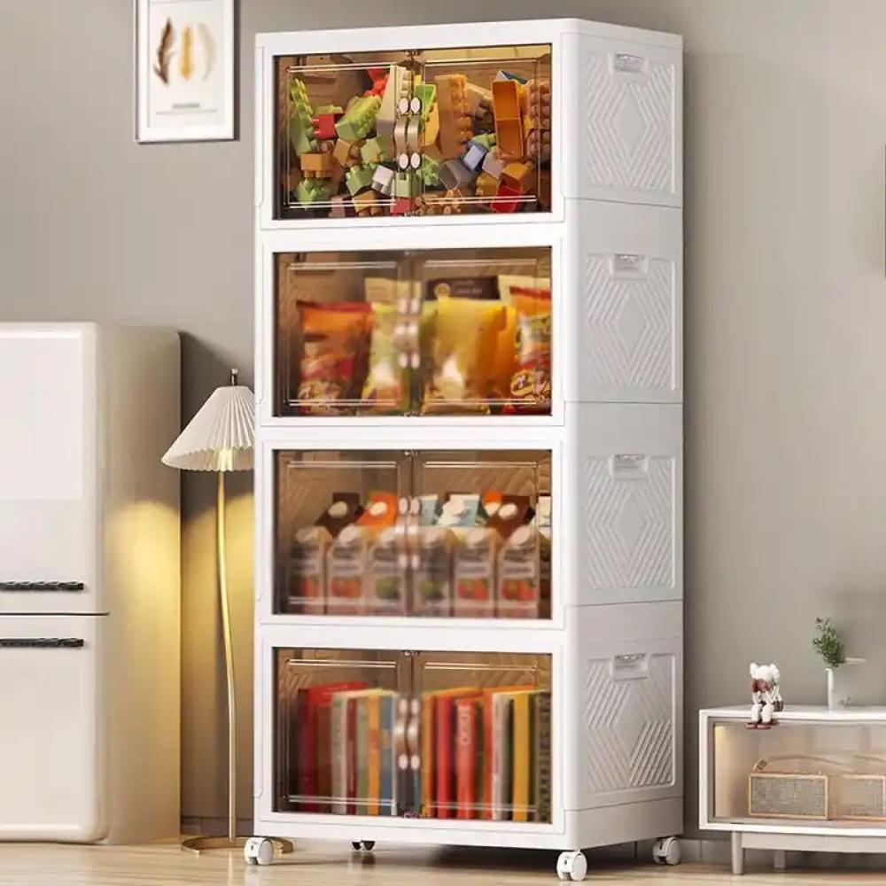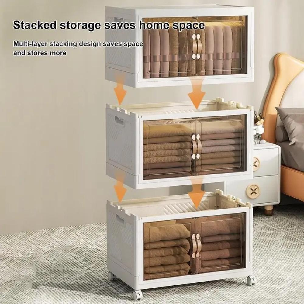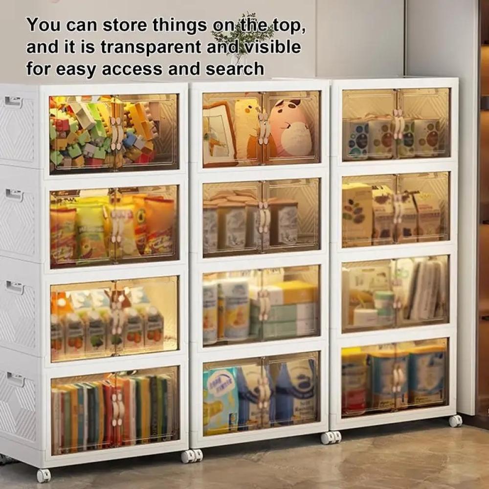 • يمكن فتح حاويات منظم التخزين البلاستيكية بطريقتين ، يمكن فتح صندوق التخزين القابل للطي من الغطاء العلوي أو الأبواب الأمامية ، ومن السهل الوصول إلى العناصر ، حتى تتمكن من تكديس صناديق التخزين بثقة دون الحاجة إلى حمل جميع العناصر عليها من أعلى إلى أسفل