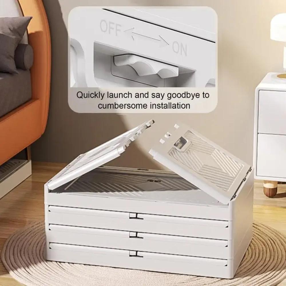• عندما لا تكون قيد الاستخدام ، يمكن أيضًا طي صناديق التخزين البلاستيكية ووضعها تحت الأريكة أو السرير. يمكن لصناديق التخزين القابلة للطي توفير مساحة كبيرة. يمكن نقل صناديق التخزين المكدسة ذات الأغطية بسهولة بفضل العجلات المرفقة بالجزء السفلي.
