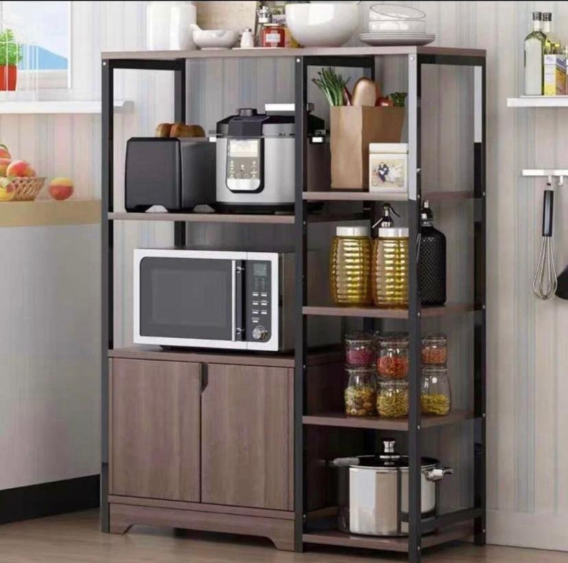 رف تخزين للمطبخ، حامل عملي للميكروويف، عربة تخزين ورف محطة عمل للمطبخ وغرفة النوم والحمام والمكتب (اسود سي)